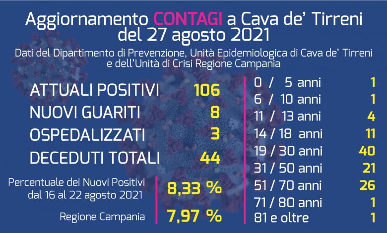 Sono 106 i cavesi attualmente positivi al Covid-19. Intanto, il Governatore De Luca ha tracciato i prossimi obiettivi della Campagna vaccinale in Campania.