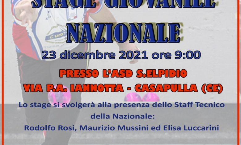 A Casapulla in provincia di Caserta, presso il bocciodromo Sant’Elpidio, si svolgerà giovedì 23 dicembre uno stage giovanile alla presenza dei tecnici nazionali.