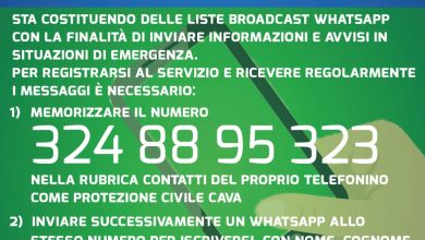 Cava de’ Tirreni: Protezione Civile, create liste broadcast su whatsapp per comunicazioni più immediate con i cittadini in caso di…