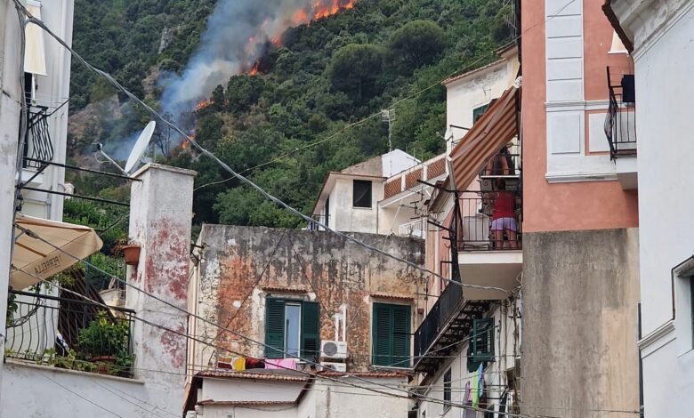Cetara, incendio in località Valle minaccia le abitazioni che sovrastano il borgo (VIDEO)